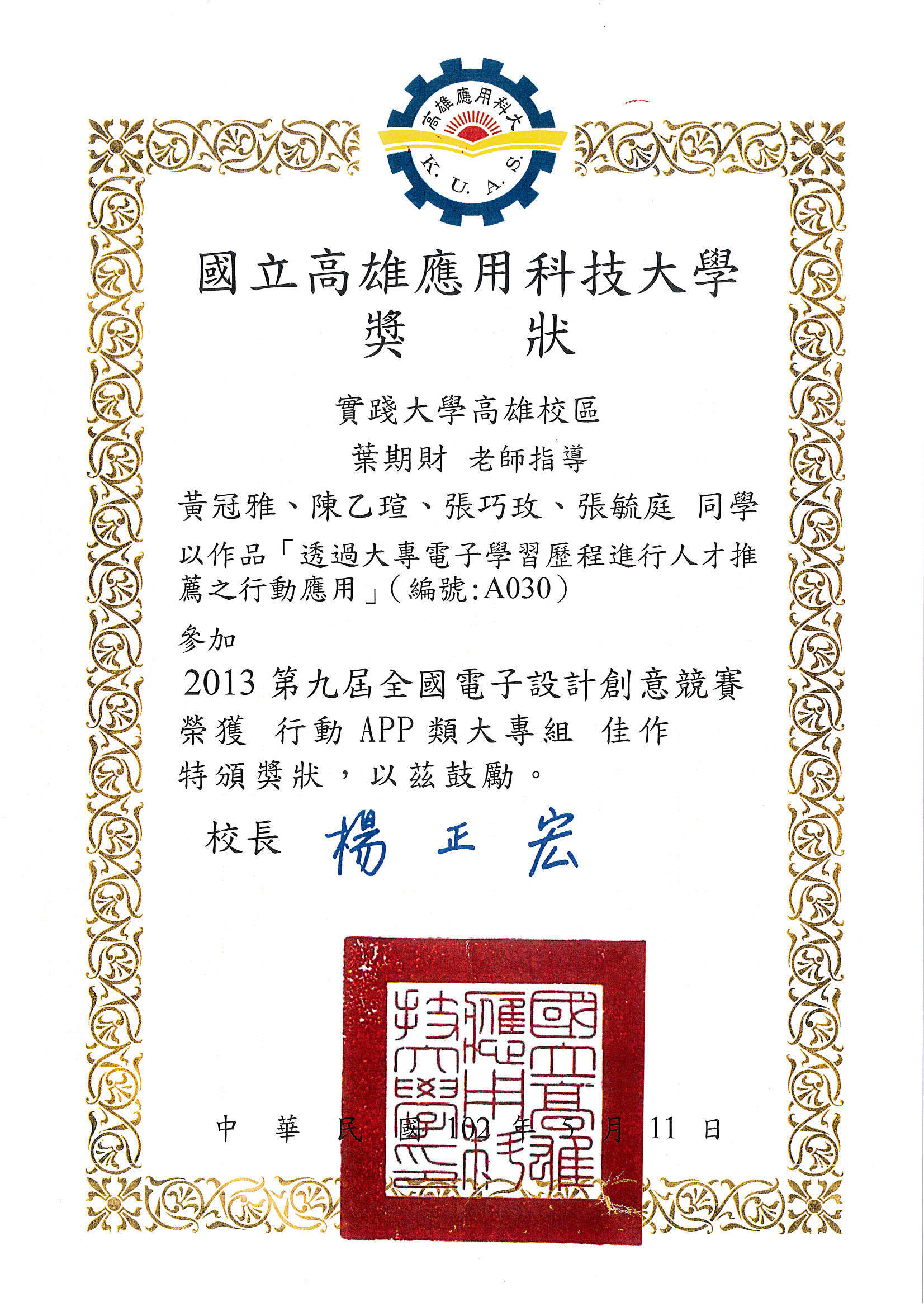 得獎證書 |